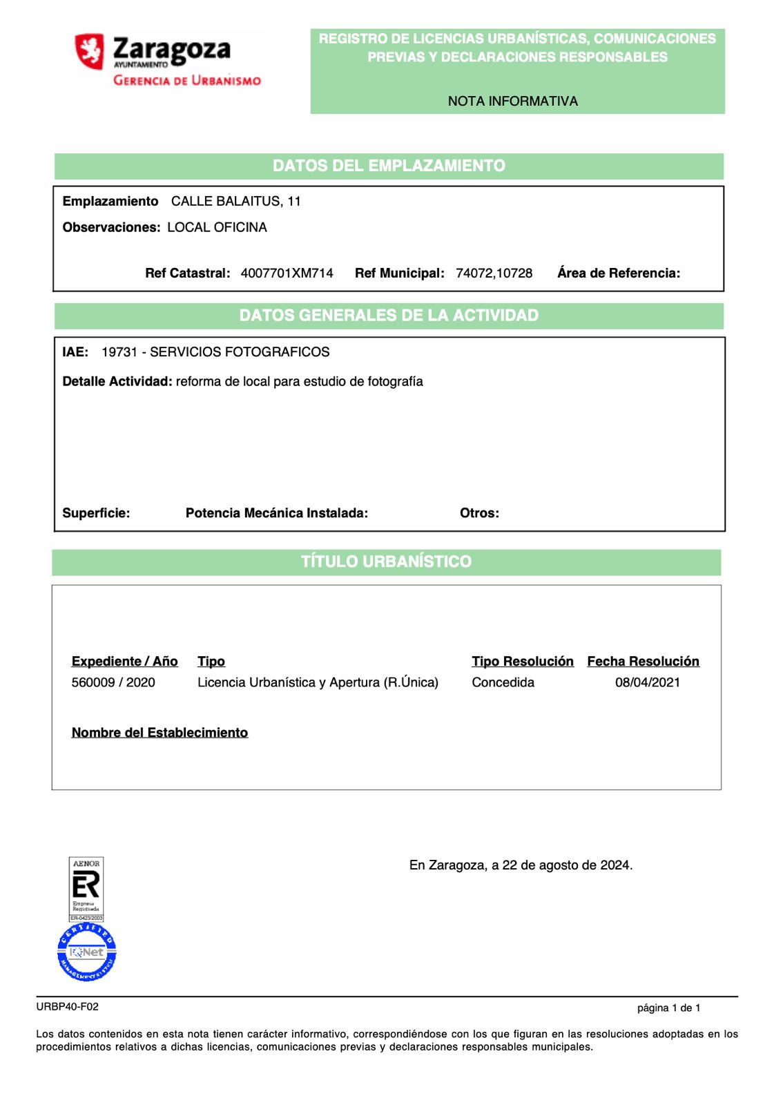 ALQUILER LOCAL COMERCIAL de aproximadamente 40m2 en Casablanca – Calle Balaitus 11. Situado en barrio residencial con comercios asentados y muy bien comunicado por el tranvía de Zaragoza en la parada de Argualas y junto al Polígono.