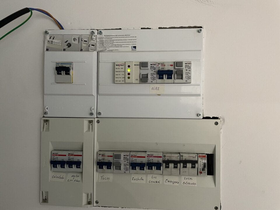 Instalación eléctrica completa: acometida, cuadro, diferenciales e iluminación instalada.
