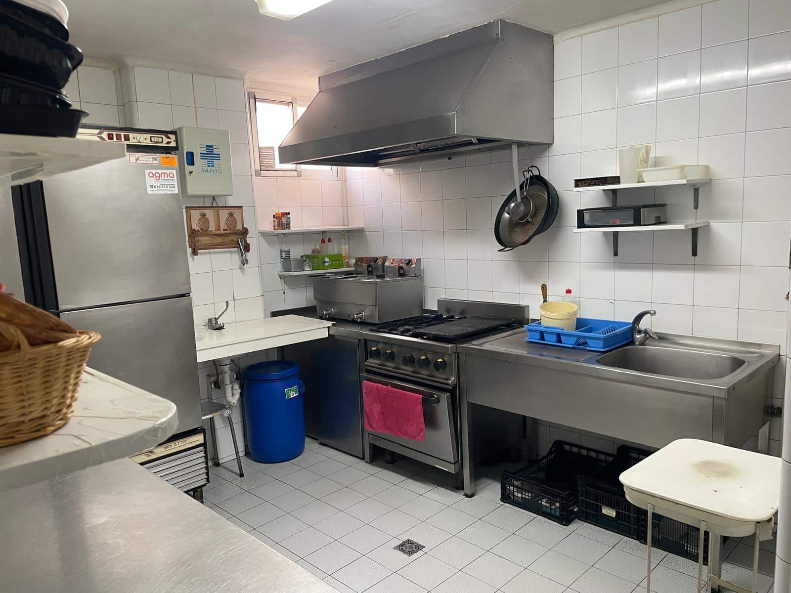 - Cocina equipada con fogones, plancha, campana extractora industrial y salida de humos exterior.
