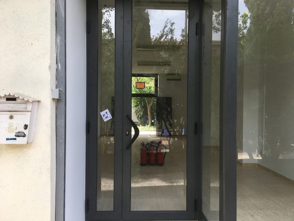 • Puerta de entrada de carpintería metálica  de dos hojas en fachada delantera, apertura hacia el exterior. NUEVA