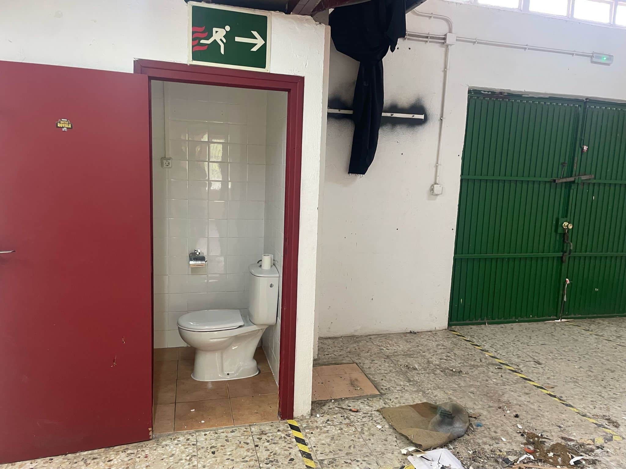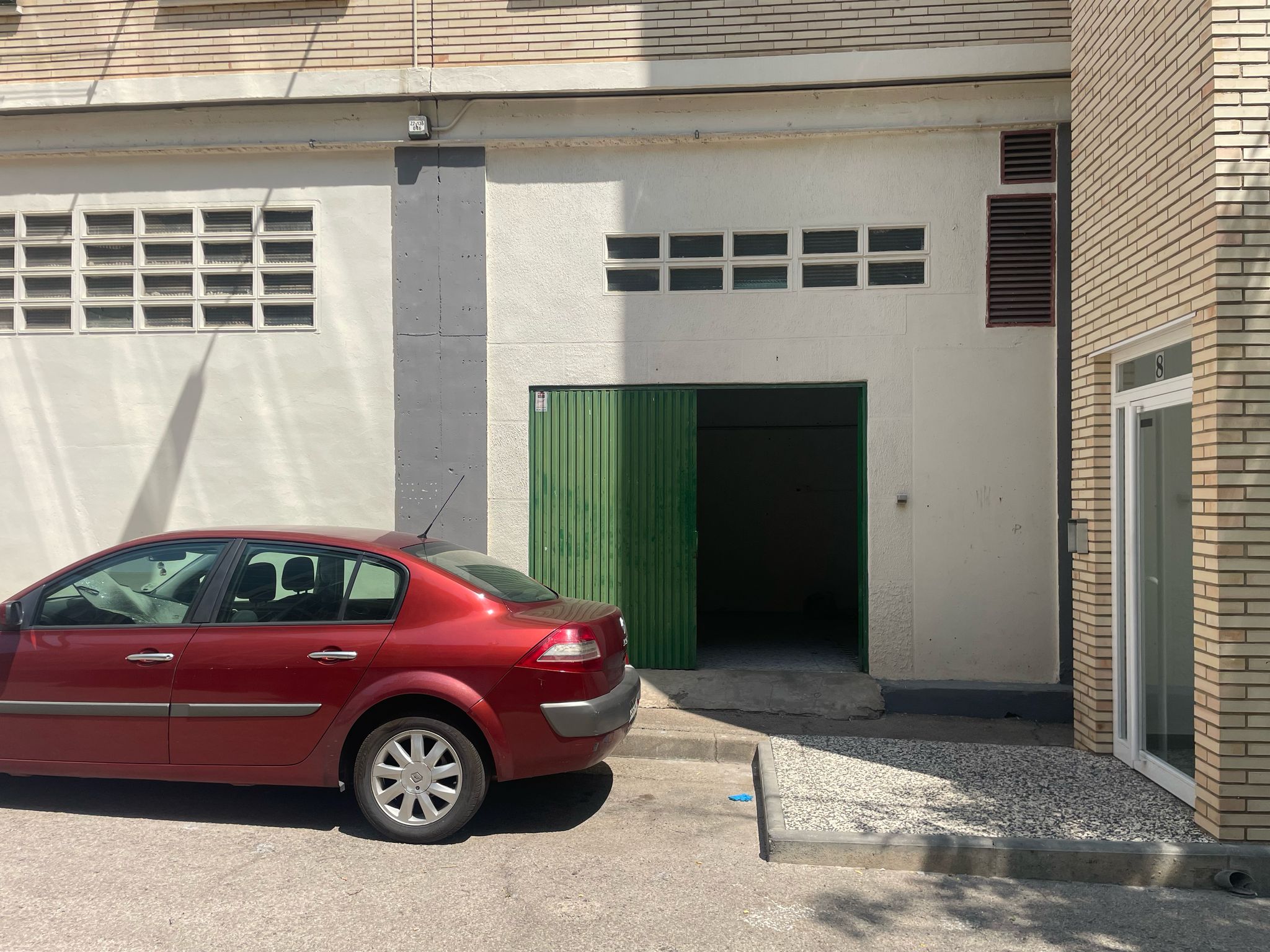 • Puerta metálica de dos hojas en la fachada trasera.