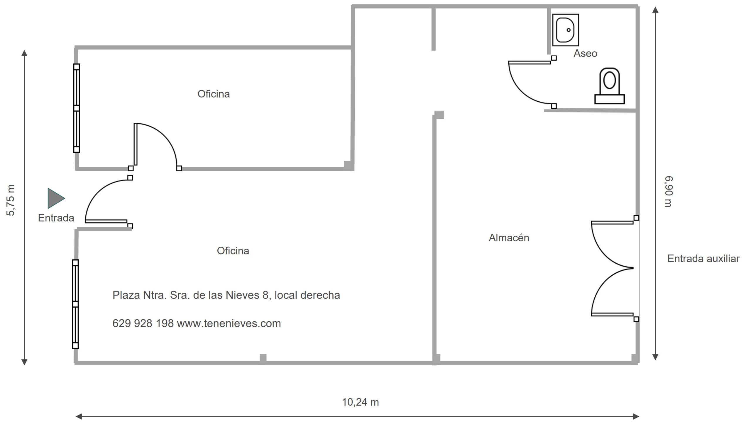 • Espacio interior distribuido en: zona recepción, oficina y almacén